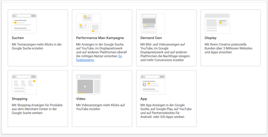 Die Wahl des optimalen Kampagnentypen hängt stark von der Dienstleistung/vom Produkt und den zu erreichenden Zielen ab.